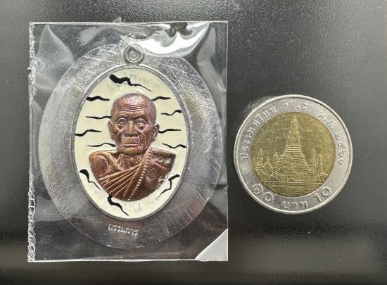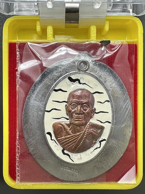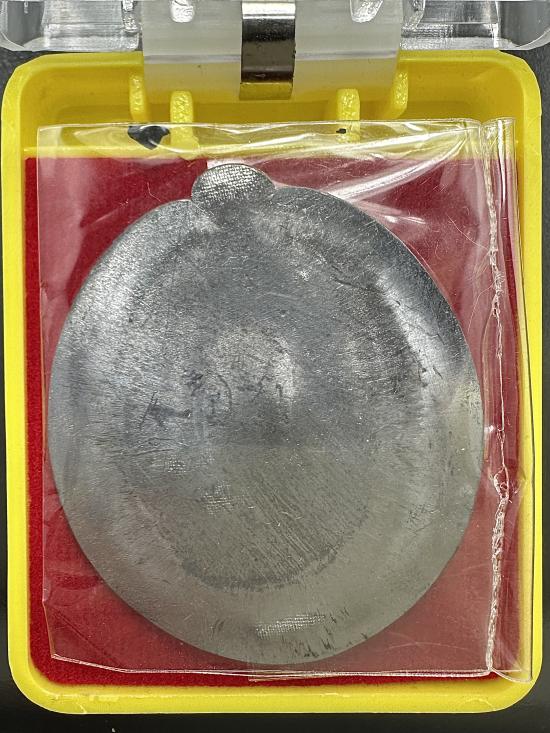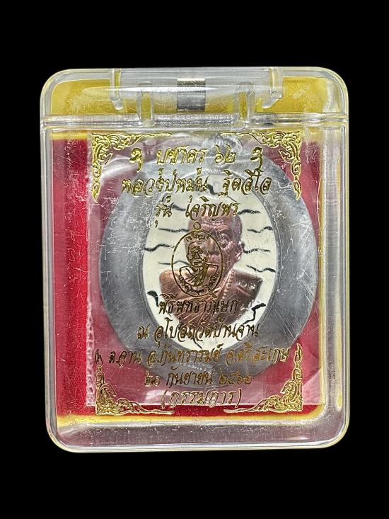 เหรียญบูชาครู 62 หลวงปู่หมุน ฐิตสีโล รุ่น เจริญพร พิธีพุทธาภิเษก ณ อุโบสภวัดบ้านจาน จ.ศรีสะเกษ ปี 2562 เนื้อ ตะกั่วลงยาลาย เสือเบนส์กอไม่ตัดปีกหลังเรียบ หน้ากากทองชนวน หมายเลข 209 กรรมการ พร้อมกล่อง