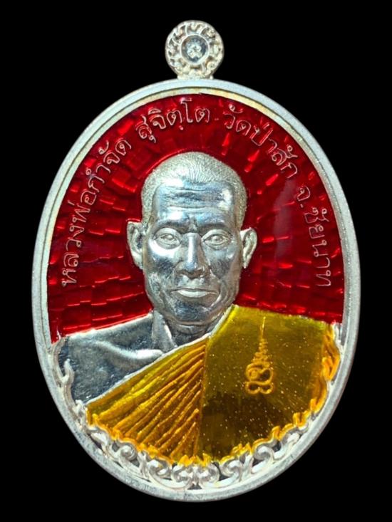 เหรียญหลวงพ่อกำจัด วัดป่าสัก ชัยนาท ปี 2555 **เนื้อเงินลงยาสีแดง** เลขตอกโค๊ต no.407 สภาพสวยครับ (ไม่มีกล่องครับ)