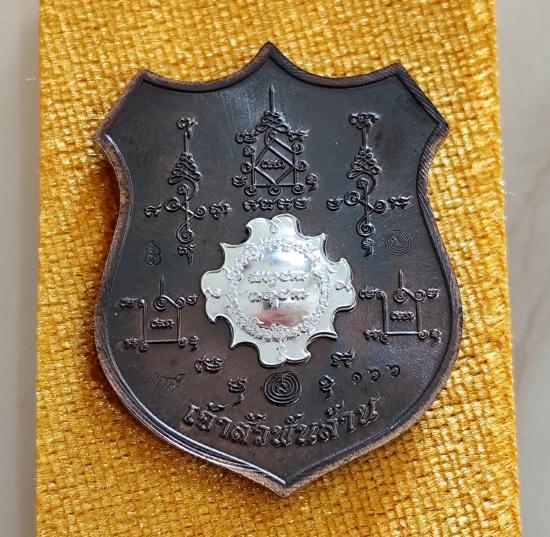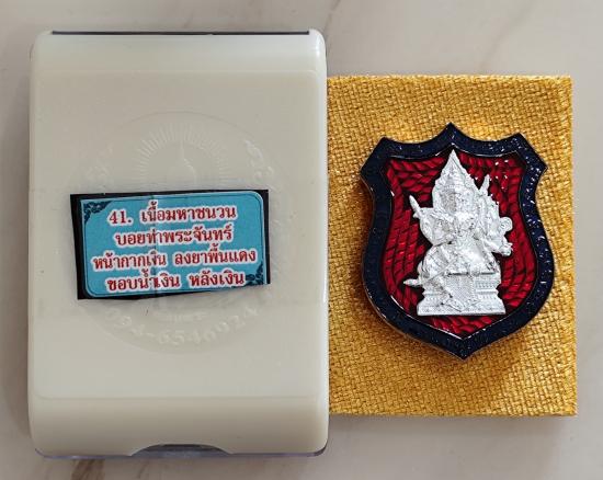 เหรียญท้าวมหาพรหม รุ่นเจ้าสัวพันล้าน(บอย ท่าพระจันทร์) เนื้อมหาชนวนลงยาพื้นเเดงขอบน้ำเงิน หน้า-หลังหน้ากากเงินแท้ โค๊ตนำฤกษ์ No.๑๖๖ พร้อมกล่องเดิม
