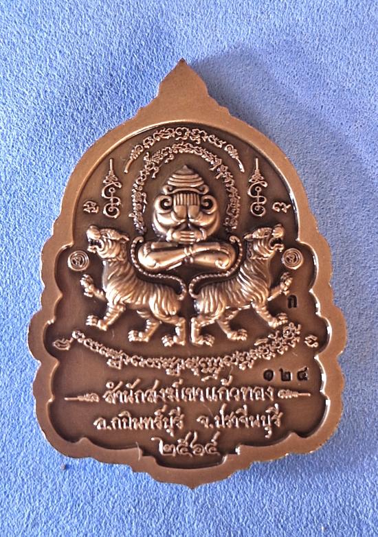 เคาะเดียวแดง หลวงปู่บุญมา เหรียญ 5 พยัคฆ์ เนื้อทองแดงซาติน ลงยา |