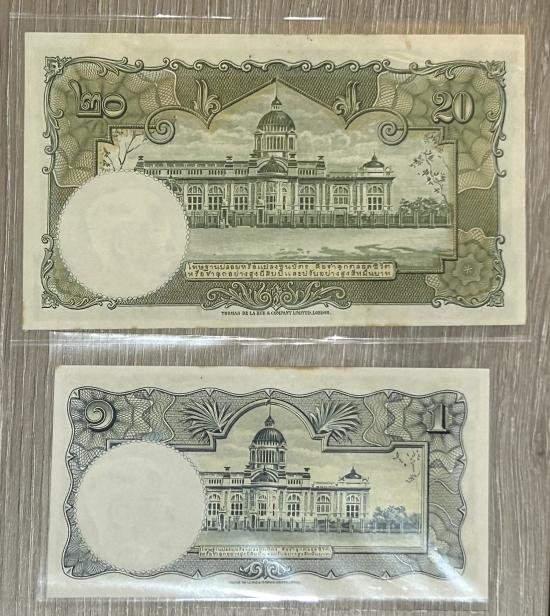 ชุดธนบัตร ร.9 โทมัส 2 ใบ ชนิดราคา 20 บาท และ 1 บาท เลขตอง 111 และ 888 ผ่านใช้สวยๆน่าสะสม |