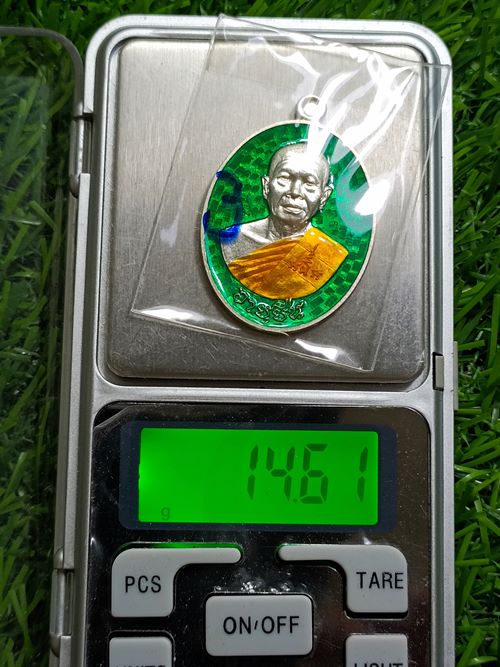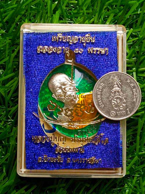 " วัดใจ เคาะเดียวแดง " เหรียญอายุยืน ฉลองอายุ 80 พรรษา หลวงปู่บุญ ปริปุนณสีโล วัดปอแดง (สวนนิพพาน) จ.นครราชสีมา ปี 2558 เนื้อเงิน ลงยาสีเขียว หมายเลขตัวเดียว 3 (น้ำหนักโดยประมาณ 14.xx กรัม) ขนาดสูงรวมห่วงโดยประมาณ 4.0 ซม.ขออนุญาตถ่ายและชั่งน้ำหนักผ่านซองใสนะครับ