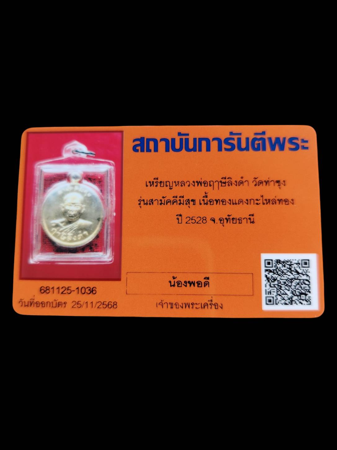 เหรียญหลวงพ่อฤาษีลิงดำรุ่นสามัคคีมีสุข​ มาพร้อมบัตรรับรอง