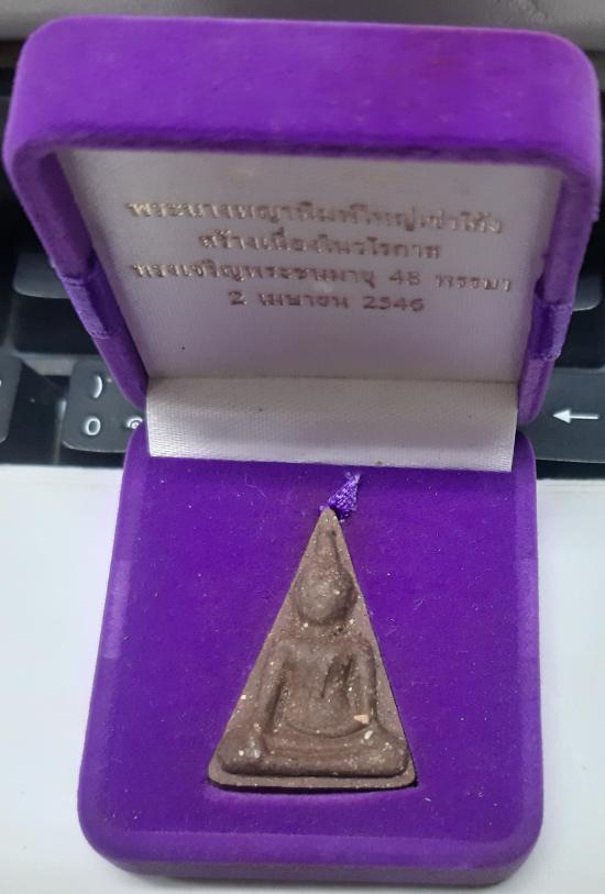 พิมพ์เข่าโค้ง เนื้อผงว่าน ตะกรุดเงิน พ.ศ.2546 พร้อมกล่อง