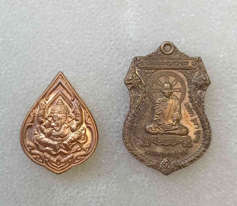 เหรียญพระพิศคเนศวร์+รวยมหาเศรษฐีหลวงพ่ออรวยวัดตะโกแถมไก่โชคดีทองทิพย์+ทองแดงชนวนเคาะเดียวแดง