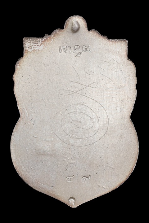 เหรียญเสมาบูชาครู หลวงพ่อตัด วัดชายนา เนื้อเงินลงยาสีแดง หลังเรียบ จารมือ สร้าง 79 เหรียญ ไม่มีกล่อง เคาะเดียวแดงครับ