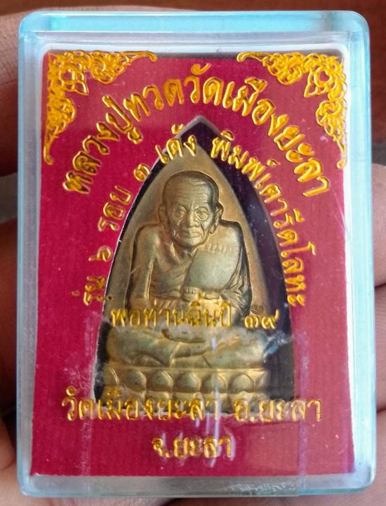 หลวงปู่ทวดวัดเมืองยะลา รุ่น 6 รอบ 3 เด้ง พิมพ์เตารีดโลหะ พ่อท่านฉิ้น ปี 39 วัดเมืองยะลา พร้อมกล่องเดิม |