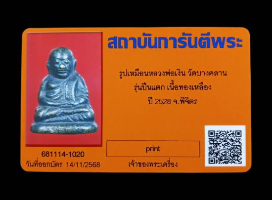 หลวงพ่อเงิน รุ่นปืนแตก ปี 2528 วัดบางคลาน จ.พิจิตร พร้อมบัตรรับรอง ครับ