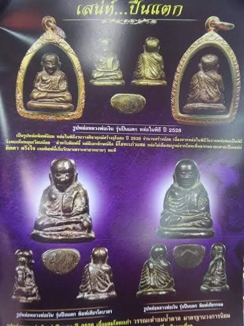 หลวงพ่อเงิน รุ่นปืนแตก ปี 2528 หล่อด้วยเนื้อระฆังเก่า และพระบูชาเทวรูป สมัยต่างๆ ที่ขุดพบใต้ฐานชุกชีพระประธานในโบสถ์เก่า สมัยหลวงพ่อเงิน