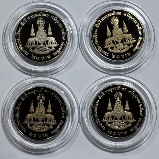 เหรียญ 20บาทขัดเงา ที่ระลึกงานฉลองสิริราชสมบัติครบ 50 ปี กาญจนาภิเษก จำนวน 4 เหรียญ
