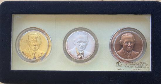 *** วัดใจ*** ชุดเหรียญในหลวงที่ระลึกการแข่งขันซีเกมส์ครั้งที่ 24 ปี 50 จำนวน 3 เหรียญ 3 เนื้อ พร้อมกล่องดิมครบครับ |