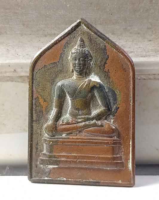 เหรียญห้าเหลี่ยม พระเชียงแสนสิงห์หนึ่ง หลังลายเซ็น จอมพล ป.พิบูลสงคราม ปี 2494 |