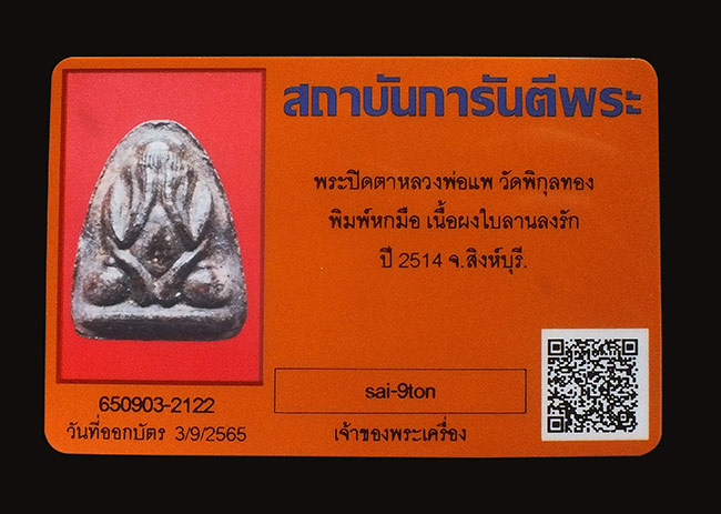 พระปิดตา จงอางศึก ปี.14 เนื้อใบลานหลวงพ่อแพ ..............................450 |