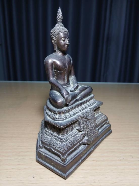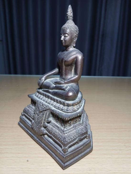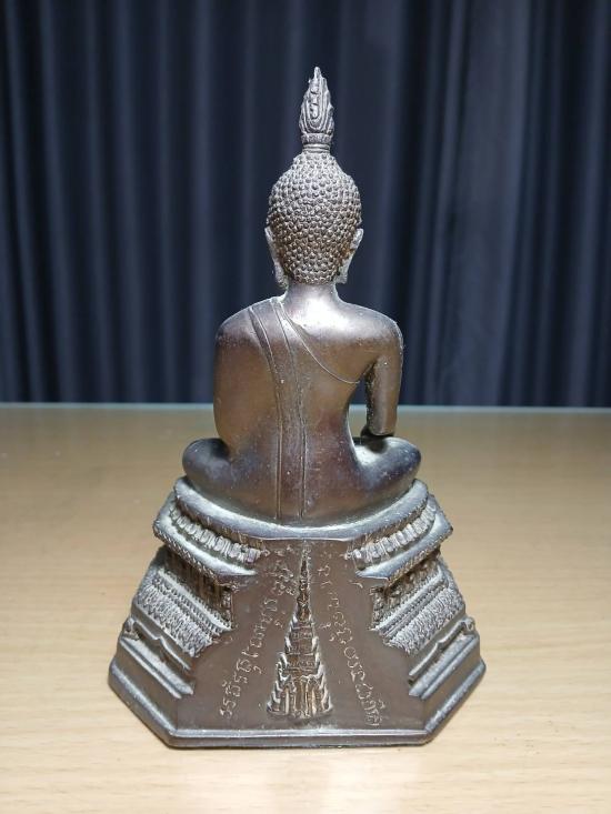 พระบูชาหลวงพ่อพระองค์แสน วัดพระธาตุเชิงชุม สกลนคร หน้าตัก 3 นิ้ว เนื้อทองเหลืองรมดำ ผิวหิ้ง
