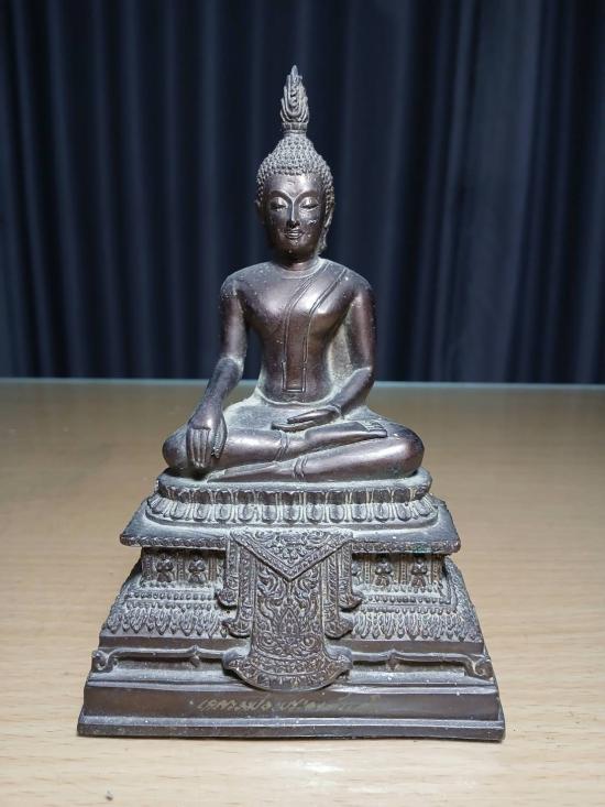 ชื่อพระเครื่อง พระบูชาหลวงพ่อพระองค์แสน วัดพระธาตุเชิงชุม สกลนคร หน้าตัก 3 นิ้ว เนื้อทองเหลืองรมดำ ผิวหิ้ง