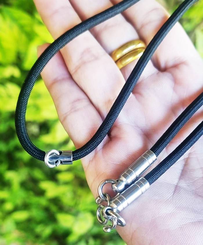 สร้อยคอคล้องพระเชือกร่มตอกหมุดหนาแน่น สวมหัวได้