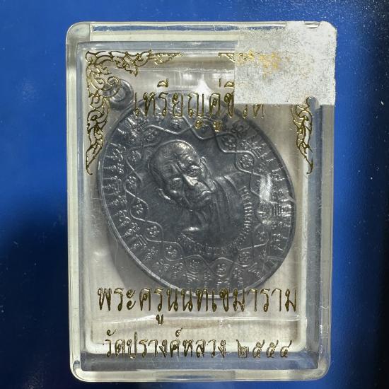 รายละเอียด เหรียญคู่ชีวิต เนื้อตะกั่ว หลวงปู่หยุด วัดปรางค์หลวง จ.นนทบุรี ปี 2554