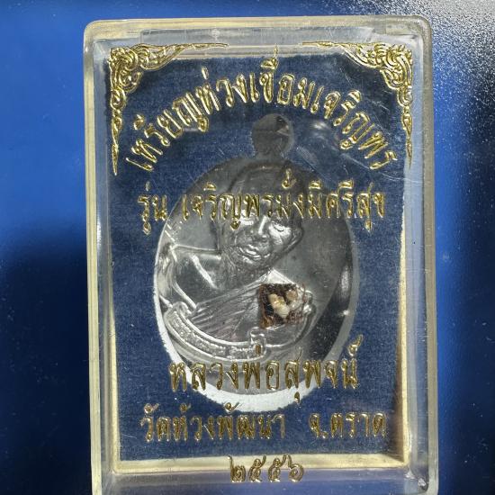 เหรียญห่วงเชื่อมเจริญพร รุ่นเจริญพรมั่งมีศรีสุข เนื้อตะกั่วมีจาร หลวงพ่อสุพจน์ วัดห้วงพัฒนา จ.ตราด สร้างปี 2556 |