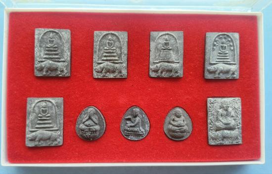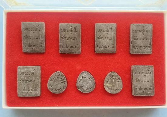 พระชุดที่ระลึกฉลองกรุงรัตนโกสินทร์ 200ปี หลวงปู่เส็ง จันทรังษี วัดบางนา อ.สามโคก จ.ปทุมธานี ปี 2525รวม9องค์ กล่องเดิม |