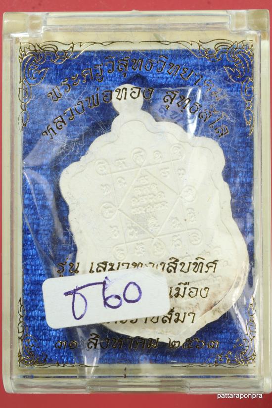 เหรียญเสมาหลวงพ่อทอง รุ่นทองสิบทิศ ปี 2563 เนื้อเงินลงยาสีธงชาติ หน้าทองคำ หมายเลข 60 |