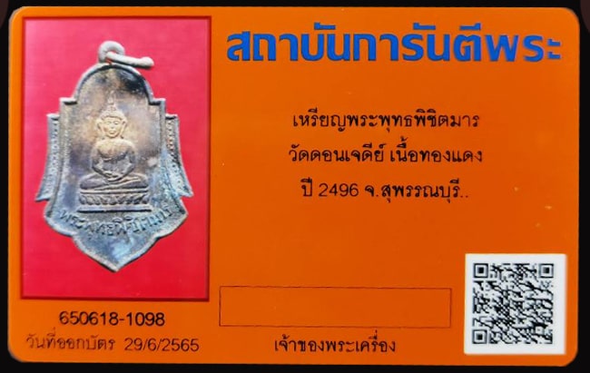 เหรียญพระพุทธพิชิตมาร วัดดอนเจดีย์ เนื้อทองแดง ปี2496 จ.สุพรรณบุรี พร้อมบัตรรับรอง