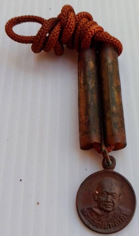 เหรียญกลม พร้อมตะกรุดคู่ หลวงปู่ทองมา ถาวโร วัดสว่างท่าสี จ. ร้อยเอ็ด อายุครบ๙๐ ปี |