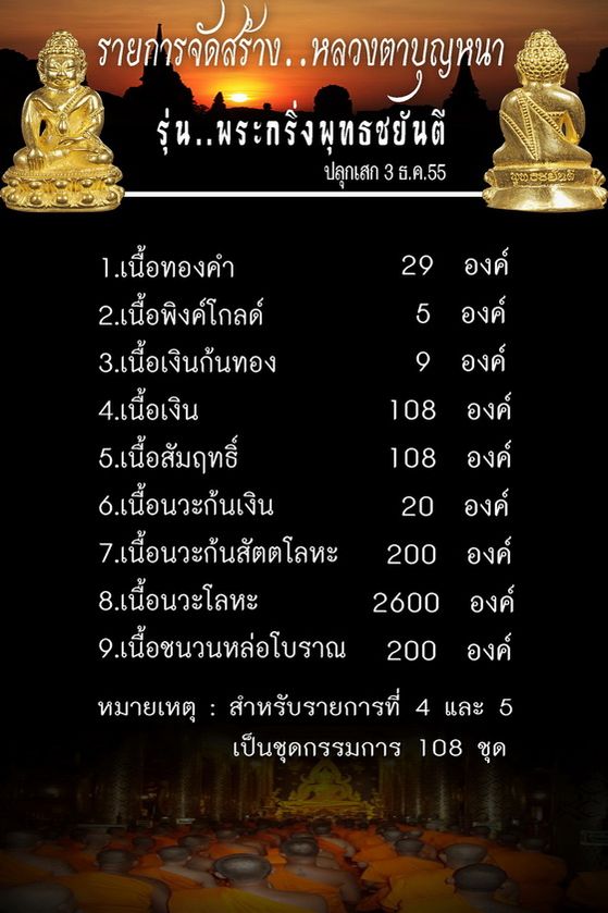 429..............พระกริ่งพุทธชยันตี เนื้อนวะโลหะ หลวงปู่บุญหนา วัดป่าโสตถิผล ปี 2555 เลข 1619 |