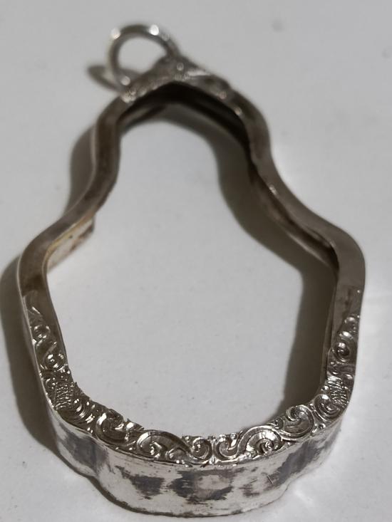 กรอบเงินแท้ สั่งตัดใส่เศียรพ่อแก่ทั่วไป หลวงปู่กาหลง ขนาดกรอบนอก 4 ซม.สูง 6.3 ซม.หัวสิงห์ใหญ่หนาหนัก 6.10 กรัม สวยครับ |