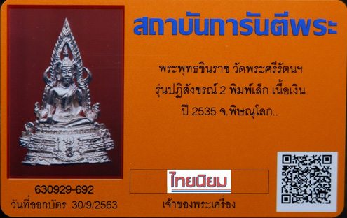 พระกริ่ง พระพุทธชินราช ภปร. รุ่นปฏิสังขรณ์ "เนื้อเงิน" ปี 2535 กล่องเดิม ๆ ครบๆ + บัตรรับรอง G-PRA |