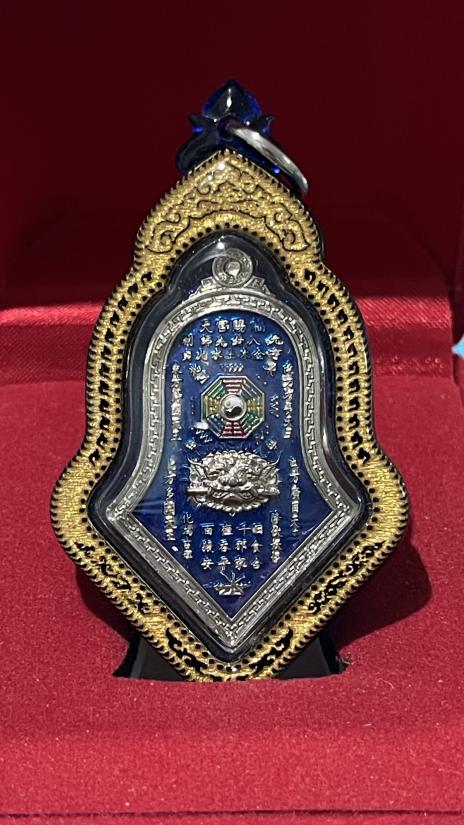 เหรียญกันชง รุ่น ๕ ทรงจำปี เสริมมงคล หลวงพ่ออิฏฐ์ วัดจุฬามณี เนื้อเงิน ลงยาราชาวดี สีฟ้า " พิมพ์ใหญ่ " พร้อมเลี่ยมสวยงาม |