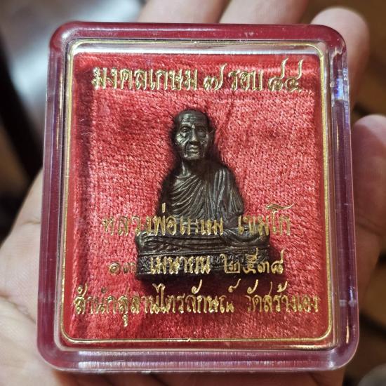 รูปหล่อมงคลเกษม 7 รอบ 84 ขนาด1นิ้ว เนื้อนวะ สวยเดิมกล่องเดิม ก้นบรรจุมวลสาร และตอกเลข เคาะเดียว 100 เริ่มบาๆ