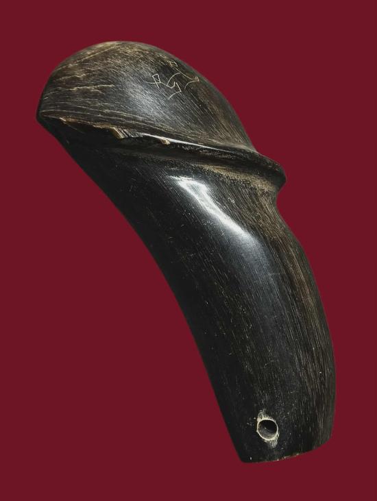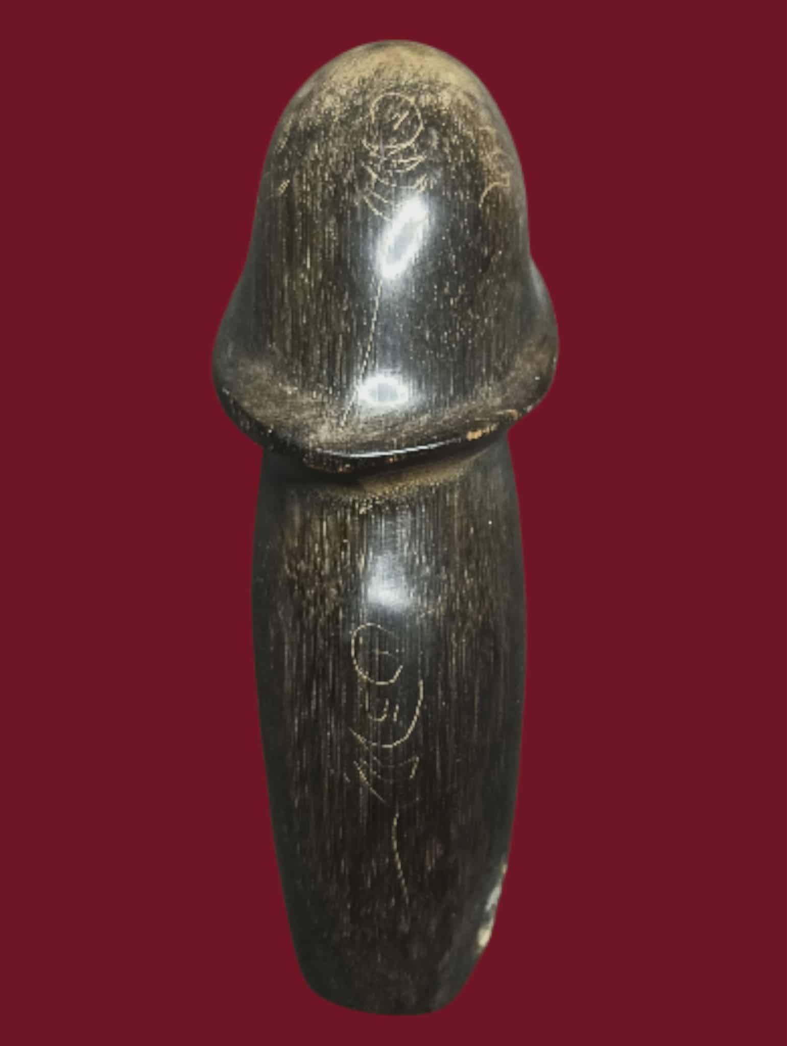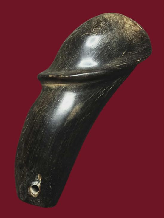 ปลักขิก แกะจากเขา ขนาดยาว 3 นิ้ว กว้าง 1 นิ้ว มีรอยจาร เก่ามีอายุ สภาพสวยครับ |