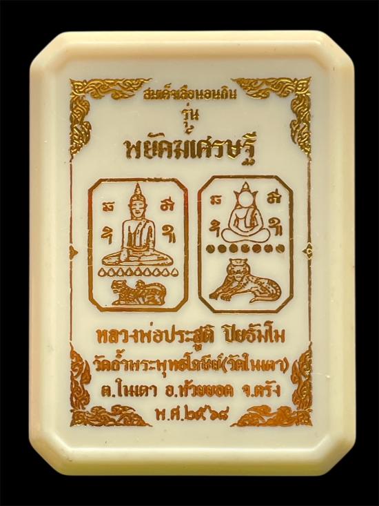 สมเด็จเสือนอนกิน รุ่น "พยัคฆ์เศรษฐี" หลวงพ่อประสูติ ปิยธัมโม วัดถ้ำพระพุทธโกษีย์ (ในเตา) จ.ตรัง เนื้อเทามวลสาร 108 ตะกรุดทอง 3 ดอก จีวรสายสิญจน์ No.12 พร้อมกล่องเดิมครับ |