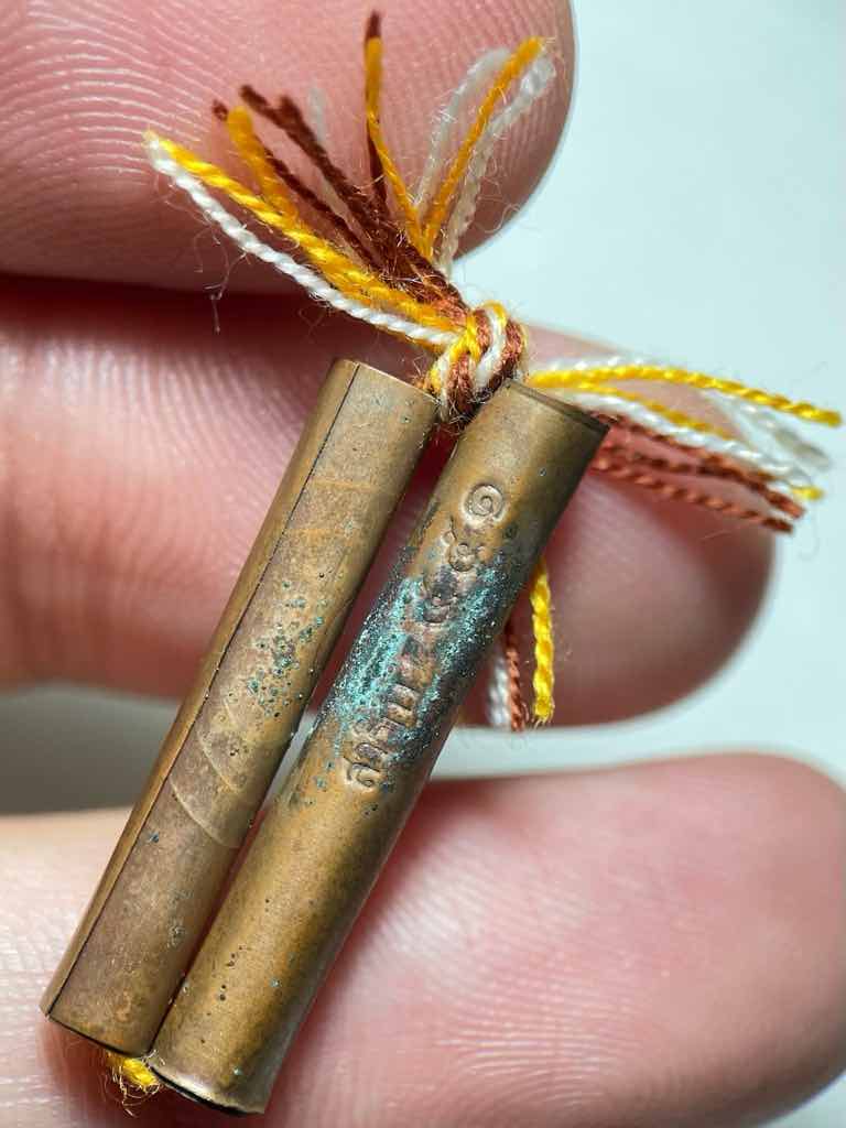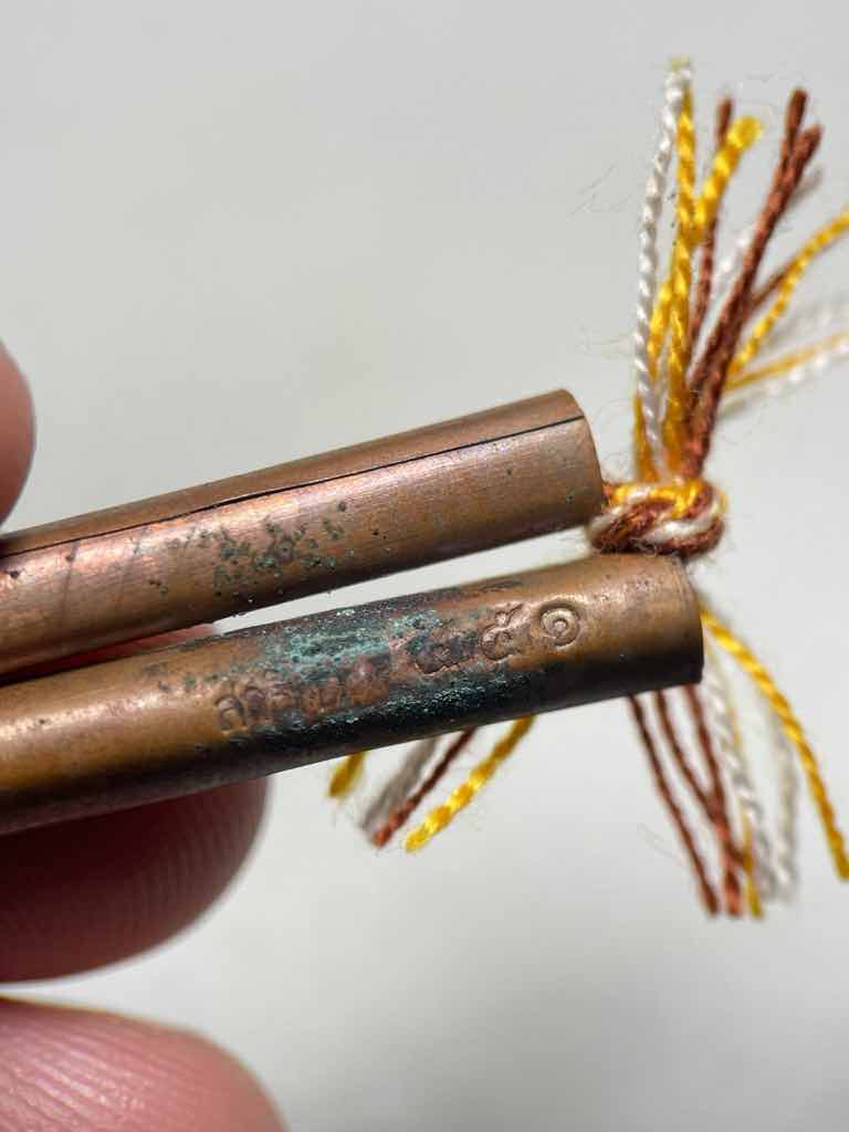 150.- ems ตะกรุด สาริกา รุ่นแรก (จารมือ) ปี 2558 เนื้อทองแดง พระอาจารย์ต๋อง วัดพุตะเคียน อ.ไทรโยค จ.กาญจนบุรี ตอกโค๊ด,ตอกเลข มีกล่องเดิม