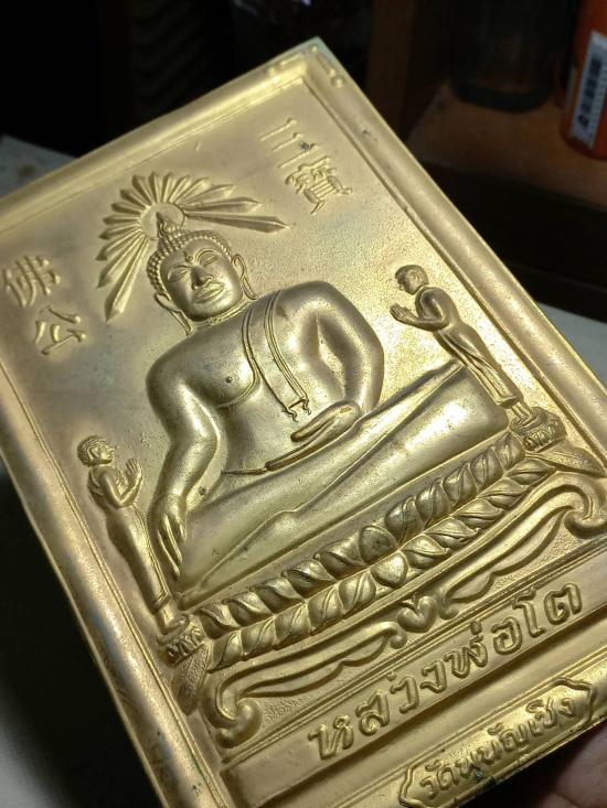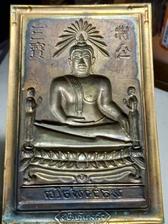 แผ่นปั้ม หลวงพ่อโต วัดพนัญเชิง ไม่ทราบปี ผิวทองเดิมๆแห้งๆ |