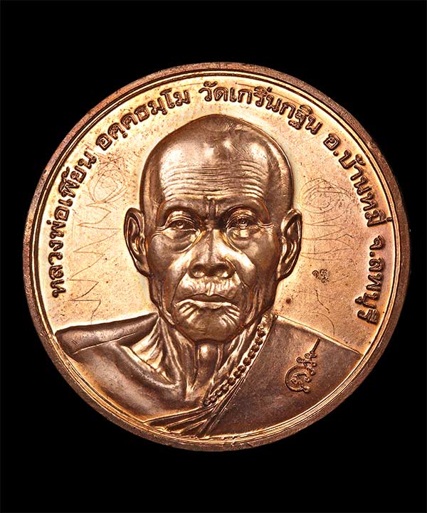 *วัดใจ* เหรียญบาตรน้ำมนต์ หลวงพ่อเพี้ยน วัดดเกริ่นกฐิน รุ่นแรก เนื้อทองแดง มีจาร ปี2545 สภาพสวย