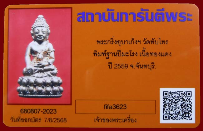 แดงที่เคาะแรก !!! พระกริ่งอุบาเก็ง 12 นักษัตร ฐานปีมะโรง เนื้อทองแดง ปี2559 (ปลุกเสกวัดสุทัศน์) + บัตรพระแท้