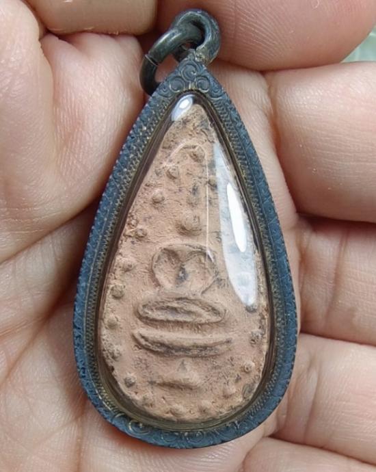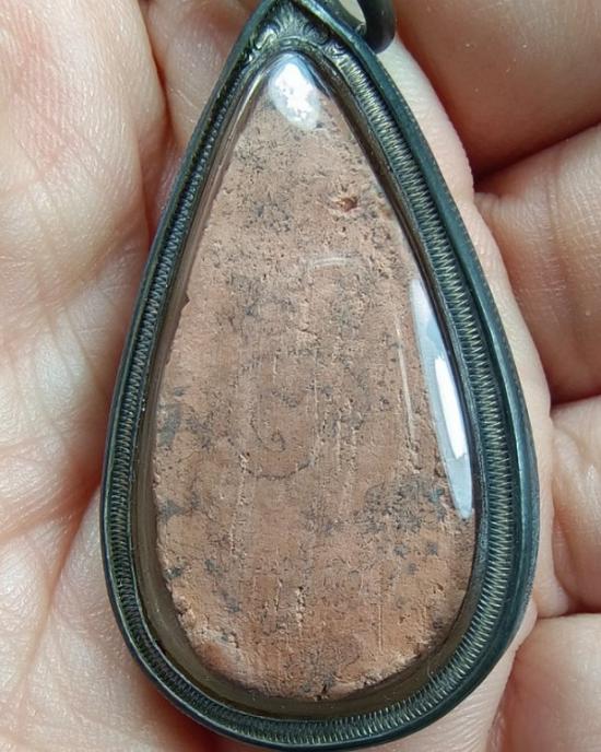 พระเนื้อดินพิมพ์กลีบบัว หลวงพ่ออนันต์ วัดดอนมะเกลือ จ.สุพรรณบุรี ปี 2475 เลี่ยมกันน้ำจับขอบ ด้านหลังมีรอยจารยันต์ด้วยดินสอ รับประกันตามกฏครับ |