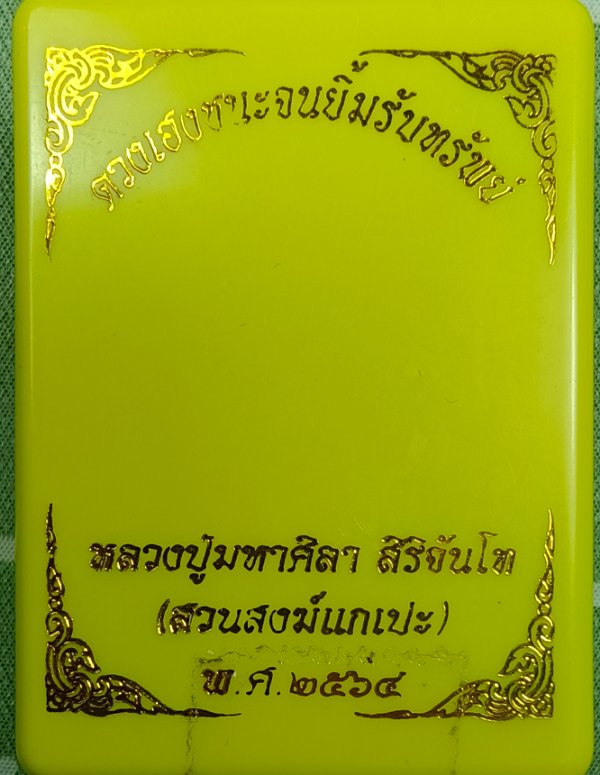 พระผงดวงเฮงชนะจนยิ้มรับทรัพย์ หลวงปู่มหาศิลา ฝังตะกรุดเงิน 2 ดอก ปี 64 |