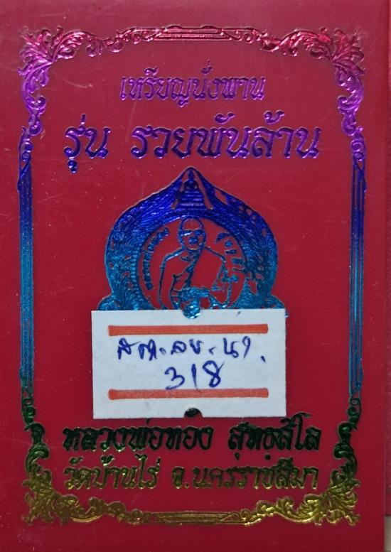 เคาะเดียวแดง เหรียญนั่งพานรวยพันล้าน หลวงพ่อทองวัดบ้านไร่ เนื้อทองเหลือง ลงยาสามสี