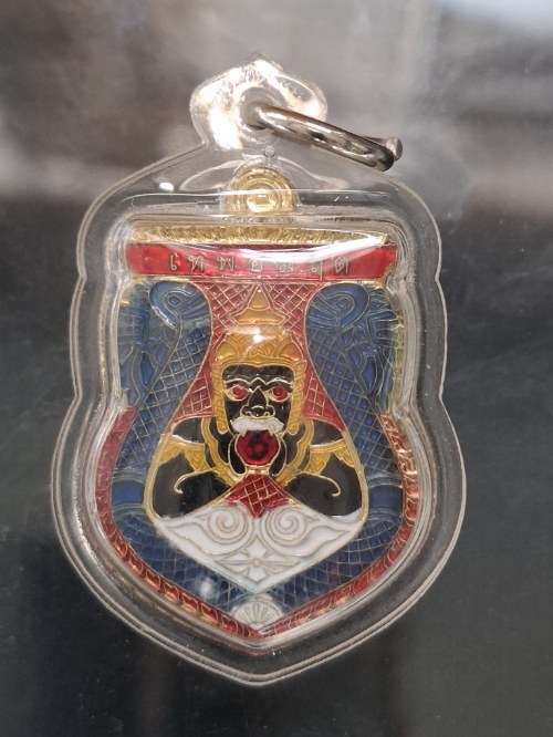 เหรียญพระราหูอมจันทร์ หลวงปู่ศิลา เมตตาอธิษฐานจิต รุ่นเหนือดวง เนื้อทองเหลืองลงยา |