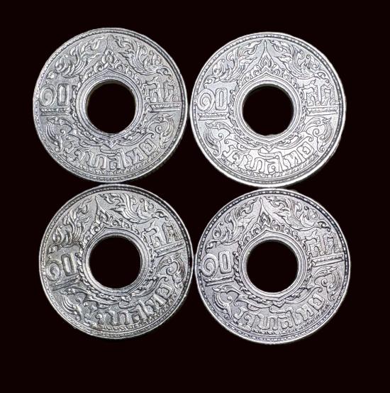 4เหรียญ เหรียญเงินรู ปี 2484 ราคา 10 สต. ลายบัวกนกแข้งสิงห์ เนื้อเงิน |