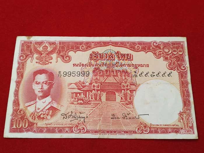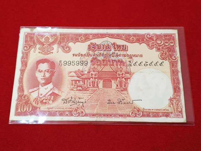 ชื่อพระเครื่อง วัดใจเคาะเดียวแดง ++ ธนบัตรโทมัส ร.9 ราคา 100 บาท หมายเลขสวย