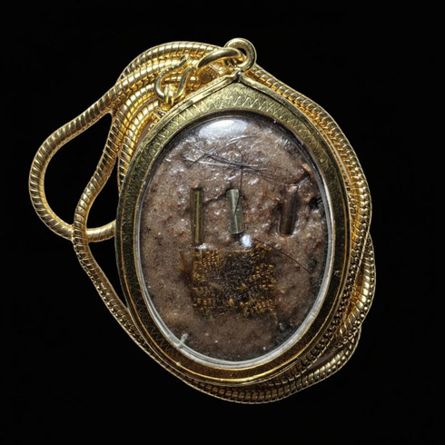 หลังตะกรุด ๓ ดอก ติดจีวร เกศา หายาก