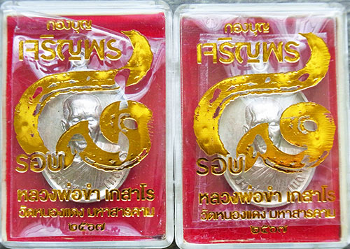 เหรียญ เจริญพรบน 8 รอบ หลวงปู่ขำ เกสาโร วัดหนองแดง ปี 2567 เนื้อทองแดงพรายเงิน พิมพ์หลับตา 2 เหรียญ พร้อมกล่องเดิม |