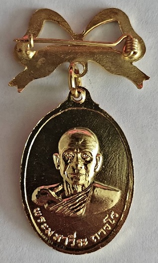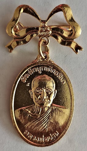 เหรียญที่ระลึกงานผูกพัทธสีมา ชุบกะไหล่ทอง หลวงพ่อปาน - หลวงพ ่อฤาษีลิงดำ วัดท่าซุง ปี2520 มีโบว์มีเข็มกลัด |