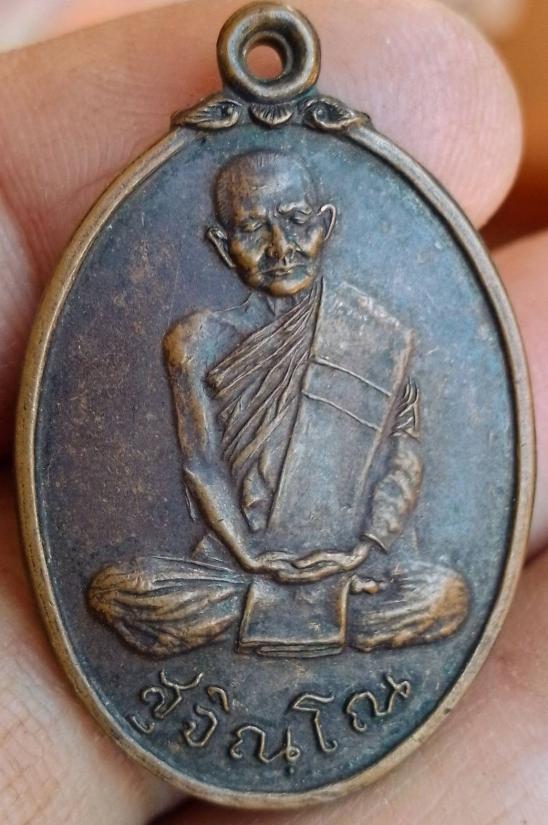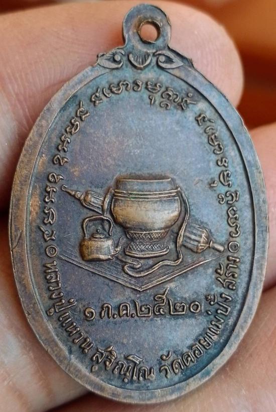 เหรียญรูปไข่นั่งเต็มองค์พิมพ์สังฆาฏิ หลวงปู่แหวน วัดดอยแม่ปั๋ง ปี 2520 |