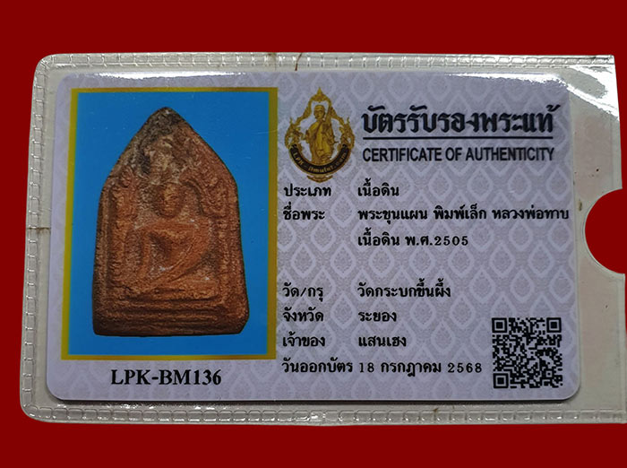 สวยแชมป์///ขุนแผนสะพายดาบหลวงพ่อทาบวัดกระบกขึ้นผึ้ง หลวงปู่ทิม ปลุกเสก ปี 2505 +บัตรรับรอง |