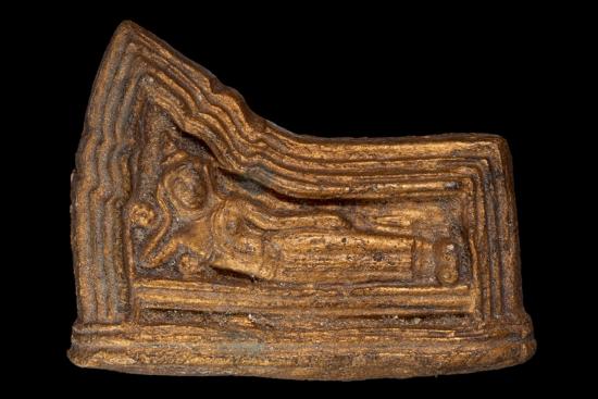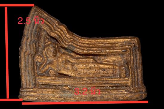 พระโคนสมอเนื้อดิน พิมพ์ปางไสยาสน์ พิมพ์เล็ก ปิดทองเดิม ขนาดความยาว3.2นิ้ว ความสูง2.5นิ้ว