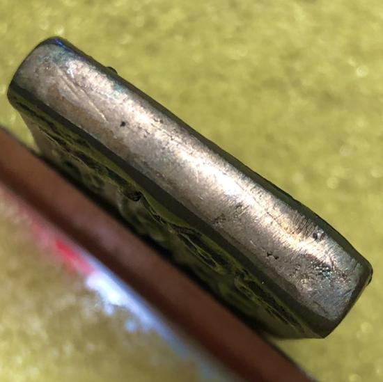 เหรียญหล่อหลวงพ่อไปล่ พิมพ์จอบเล็ก เนื้อแร่เงินยวง รุ่น 2 ปี 2534 ตอกโค๊ด กพ 3 วัดกำแพง